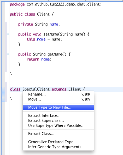 Now a private class can be moved to a file see the example in screen shot. A pattern I not often need but some times it is cool you can develop all in a file and then use this pattern.