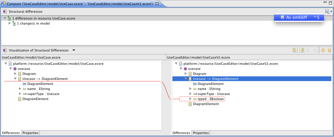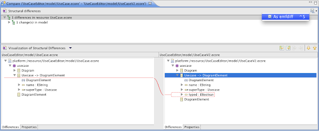 I cannot remember what I commemorated it there since Galileo, but a played around with the EMF generic model comparing tools and it looks great. You can use the EMF compare tool for all EMF based models also your own models which are based on EMF Ecore.