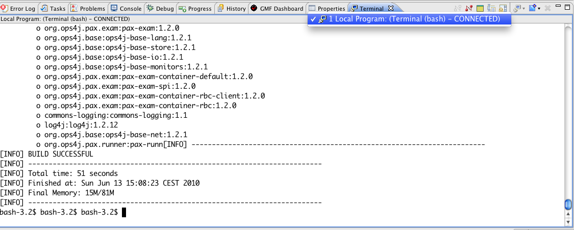 An alternative is to use the local shell feature see the screen shout bellow from the RSE project, but in this shell the TAB feature from the bash do not work. So I'm very happy about the new integration of my local bash in eclipse.